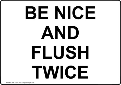 Be Nice And Flush Twice Sign, Plastic | Size: 7X5, White, NHE-37072 | By Compliancesigns