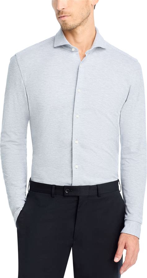 Boss Men's Hank Performance Slim Fit Casual Button Down Shirt - Gray - Size 15.5 - Light Pastel Grey