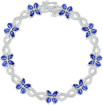 Kay Multi-Shape Blue Lab-Created Sapphire & White Lab-Created Sapphire Butterfly Infinity Bracelet Sterling Silver 7.25"