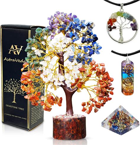 Astraveda Large 500 Bead Crystal Tree Of Life, 7 Chakra Feng Shui Healer, Gemstone Pyramid, Home Office Decor