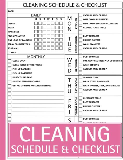 Cleaning Checklist - Word Printable Daily