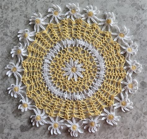 Spring Daisy Daisies Floral Thread Crochet Lace Handmade Doily 15 in