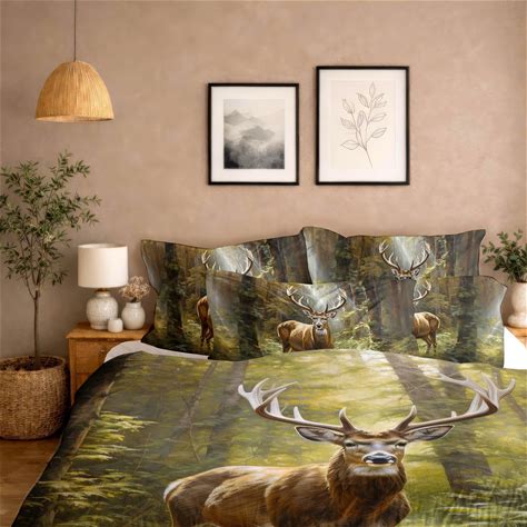 Majestic Stag Forest Bedding Set, Wildlife Northwoods Cabin Rustic Decor, White Tail Deer Gift Duvet Cover, Comforter Or Quilt Set