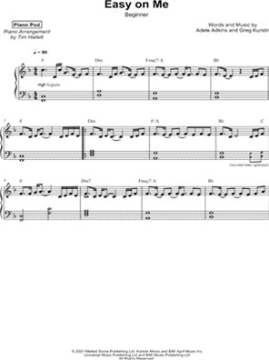 Easy On Me [Beginner] Sheet Music By Piano Pod - Piano Solo