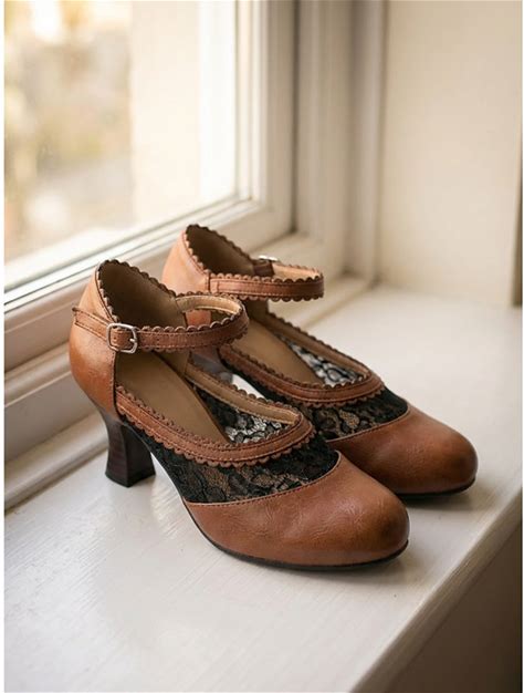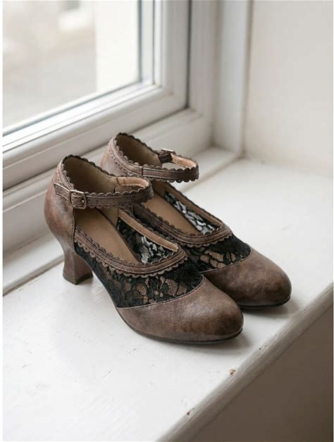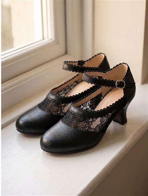 Women's Victorian Lace Wedding Pumps - Elegant Edwardian White Mid-Heel Shoes With Scalloped Trim Ankle Strap For Vintage Brides, Heritage Events Tea Parties