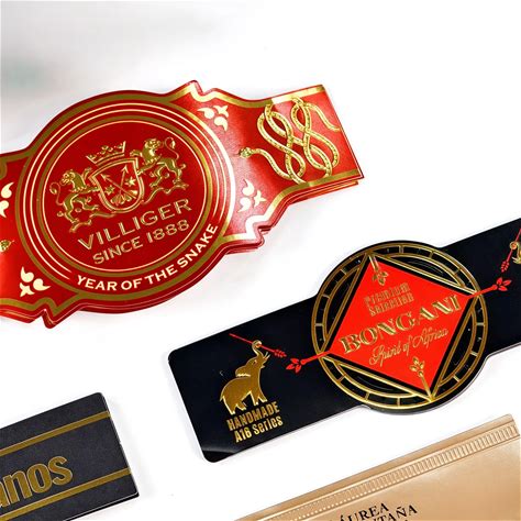 Customized Self Adhesive Sticker Printing Gold Foil Logo Vinyl Waterproof Cigar Band Packaging Label