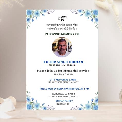 Editable Punjabi Funeral Invitation: Sikh Barsi Invitetemplate, Hindu Bhog Invite (Digital Download)