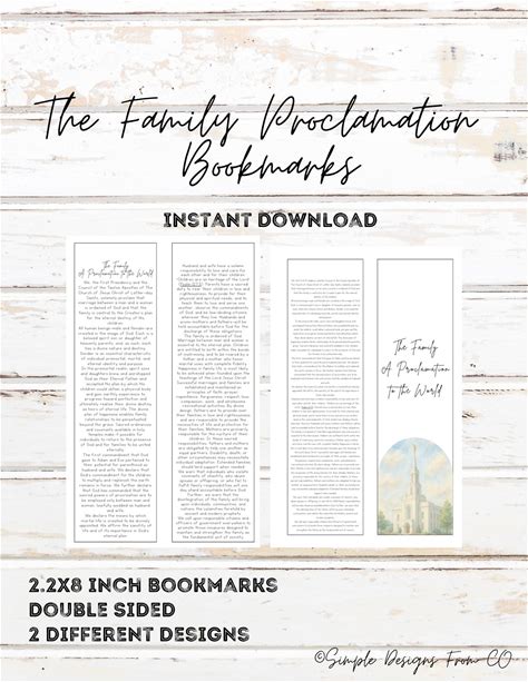 The Family Proclamation Bookmarks -LDS Printable -Double-Sided Bookmarks -Instant Download- Relief Society Handout General Conference