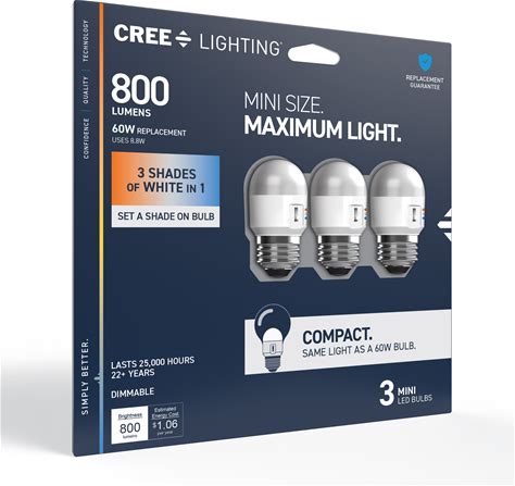 Cree Lighting Mini 60 -Watt EQ A19 Switchable White Medium Screw Base E26 Dimmable LED General Purpose Light Bulb 3 -Pack | CLB800A3CCTMINI3