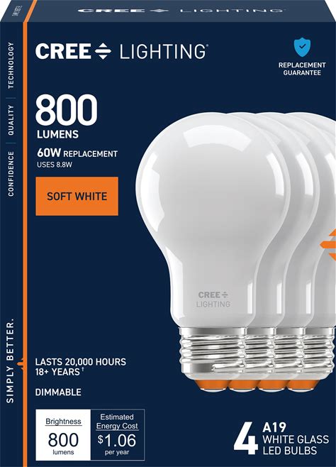 Cree Lighting 60 -Watt EQ A19 Soft White Medium Screw Base E26 Dimmable LED General Purpose Light Bulb 4 -Pack | CL800A9274