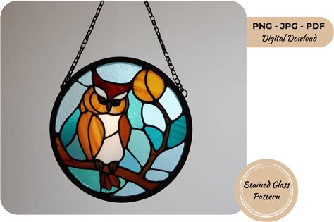 Owl Stained Glass Pattern PDF, Owl On Branch Template, DIY Suncatcher Digital Download For Glass Art
