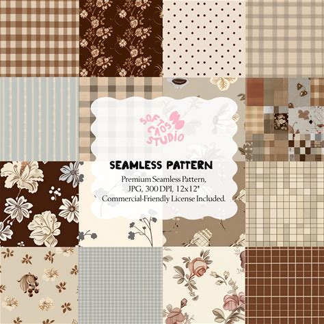 Neutral Patchwork Seamless Pattern, Beige Brown Vintage Fabric Squares, Cottagecore Quilt Print, Repeating Scrapbook Textile Digital Paper