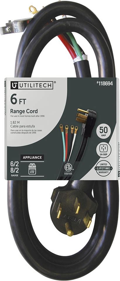 Utilitech 6-Ft 50 -Amp 3 -Prong Gray Range Appliance Power Cord One_Size | UTR628106