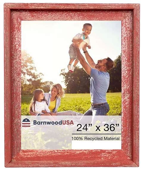 BARNWOODUSA Farmhouse Style Rustic Picture Frame - Reclaimed Wood Photo Frame – Signature Wall Picture Frames for Living Room, Bedroom, Office - Wooden Frames for Décor Rustic Red 24" x 30"