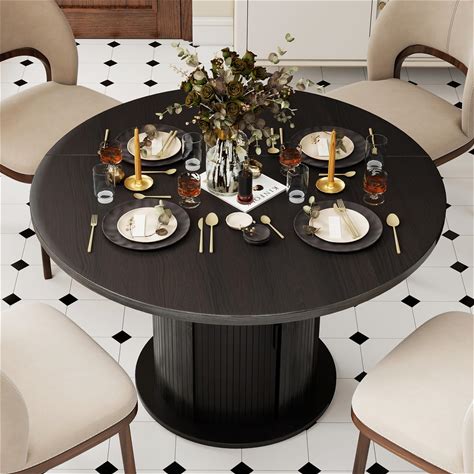 IDEALHOUSE 47" Round Dining Table Set For 4 To 6, Farmhouse Kitchen Table With Wooden Top And Pedestal Base, Circle Dinner Table For Dining Room,