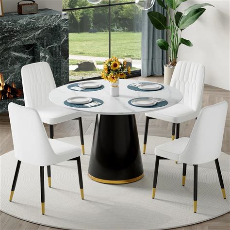 1 Table And 4 Chairs 5 Piece Set, Round Furniture Table And Chair Set Round Conference Table, Round Breakfast Bar, Kitchen Dining Table Set For
