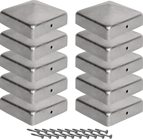 Post Caps 3.5X3.5 Inches - 10 Pieces Caps With Free Screws, Galvanized Fence Post Cap / Metal Cap Post Covers