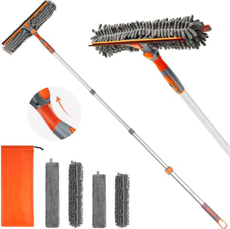 SINYUM 20+ Feet High Reach 2 in 1 Window Washing Squeegee & Duster With 3-14 ft Spliceable Extension Pole // Window Cleaning Kit With 3 Replace Pad