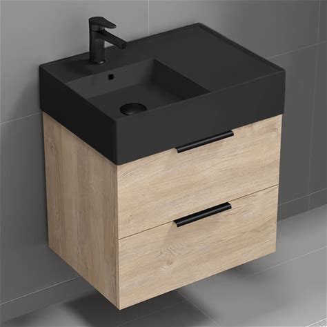 Black Floating Modern 34" Bathroom Vanity, Single Black Sink Top, 1 Cabinet Drawer, Nameeks BODRUM75