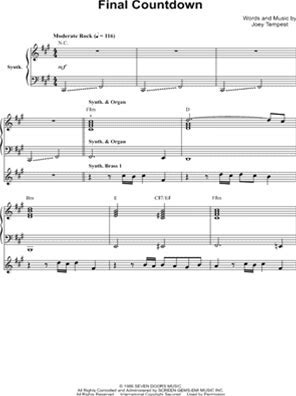 Notes - Final Countdown Sheet Music